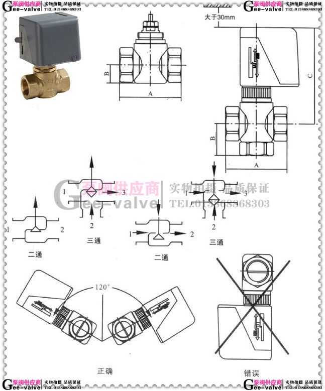4、阀体及驱动器必须安装于垂直方向±60℃范围内,其上方应至少有30mm空间用于拆装。 与周围管道、设备 、建筑物必须保持足够的维修操作空间,同时必须安装在维修人员通过检修孔能触及到的地方。