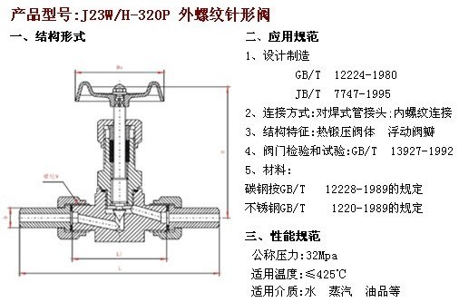 J23W/H-320P 外螺纹针形阀