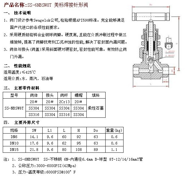 SS-6NBSW8T 美标焊接针形阀
