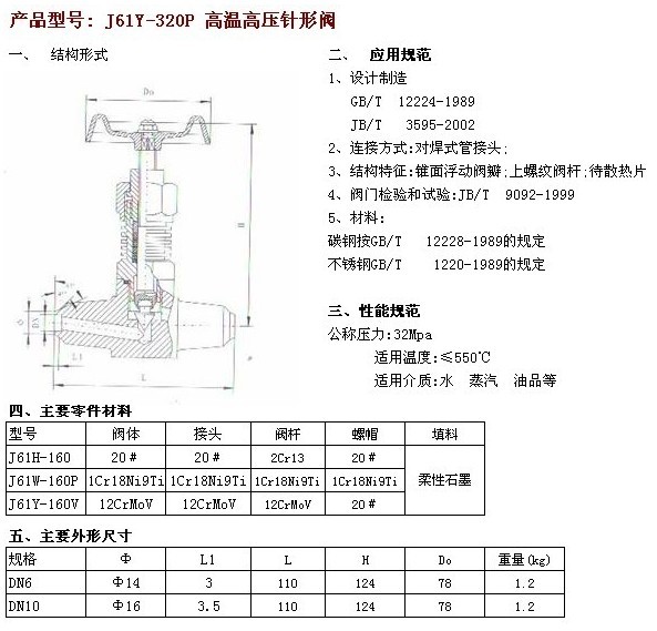 J61Y-320P 高温高压针型阀