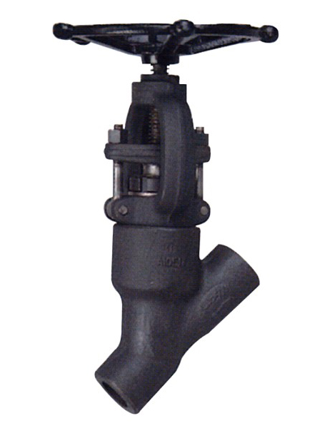 Y型锻钢阀门有三种阀盖设计形式.第一种是螺栓式阀盖,按这种设计形式设计的阀门,其阀体与阀盖用螺栓螺母连接,缠绕式垫片(304夹柔性石墨制造)密封.客户有特殊要求时也可采用金属环连接.第二种设计形式是焊接式阀盖,扫这种设计形式设计的阀门,其阀体与阀盖用螺纹连接,内压自密封环密封. 可设计成Y型阀的有截止阀和止回阀. Y型锻钢截止阀标准 Y型锻钢截止阀和止回阀阀门符合ANSI B16.34.检验与测试按API598,标记按MSS-SP-25. 承插端符合ASME B16.11, 螺纹连接端 (NPT) 符合ANSI/ASME B1.20.1 Y型锻钢截止阀材质明细表 ![]() 注意:客户需求的其他材质也可采用.密封面材料配对客户指定内件代号决定 CS=碳钢;AS=合金钢;SS=不锈钢; Y型锻钢截止阀尺寸(MM)和重量(KG) 800Lb ![]()