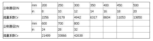 注:Cv值是阀门两端压降为IPSI的标准状况下测到的。