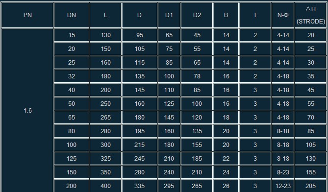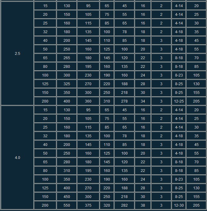 公称压力(nominalPressure) 1.6Mpa 2.5Mpa 4.0Mpa