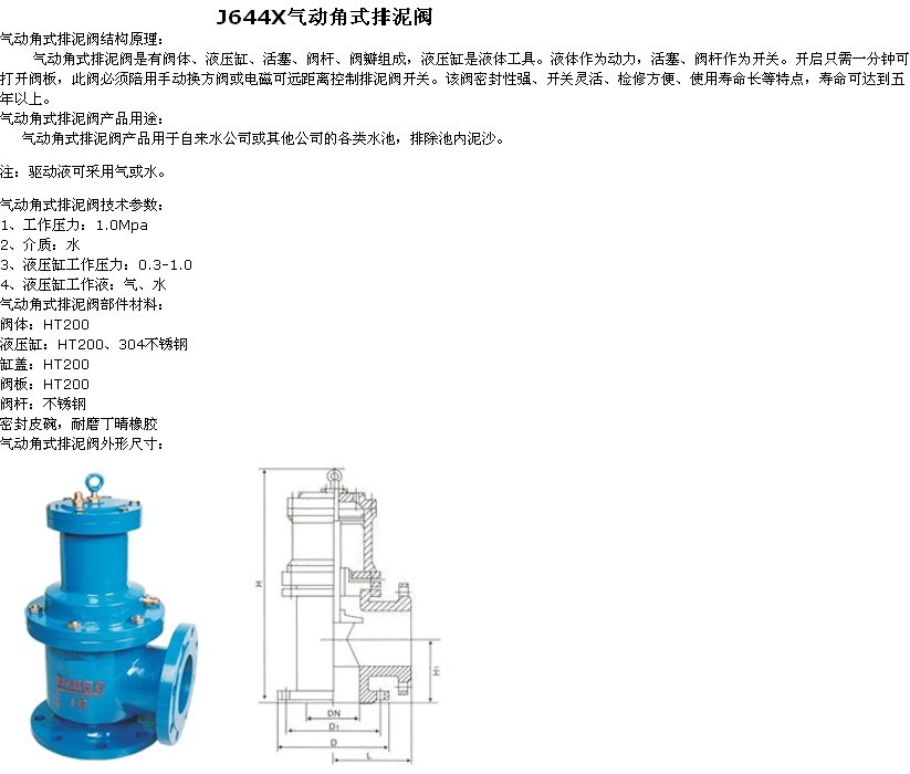 J644X气动角式排泥阀