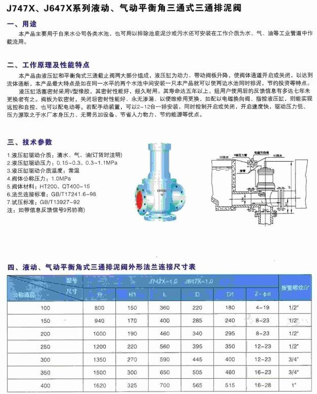 J647X、J747X气动平衡三通式排泥阀、液动平衡三通式排泥阀