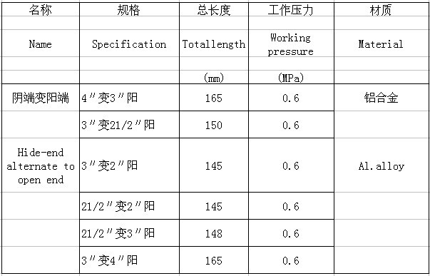 阴端变阳端主要技术参数 Main technical parameter