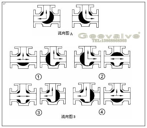 三通球阀液体流向分T型和L型,拍后备注液体流向方向,见下图: