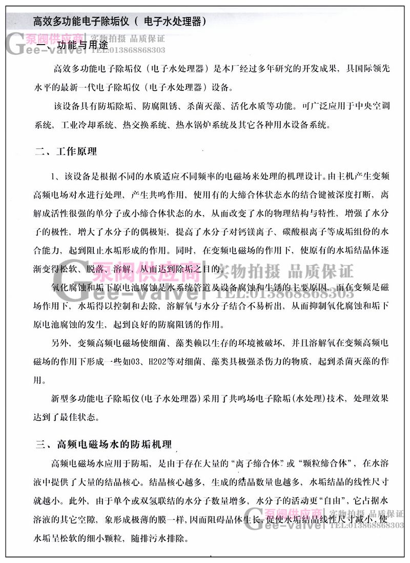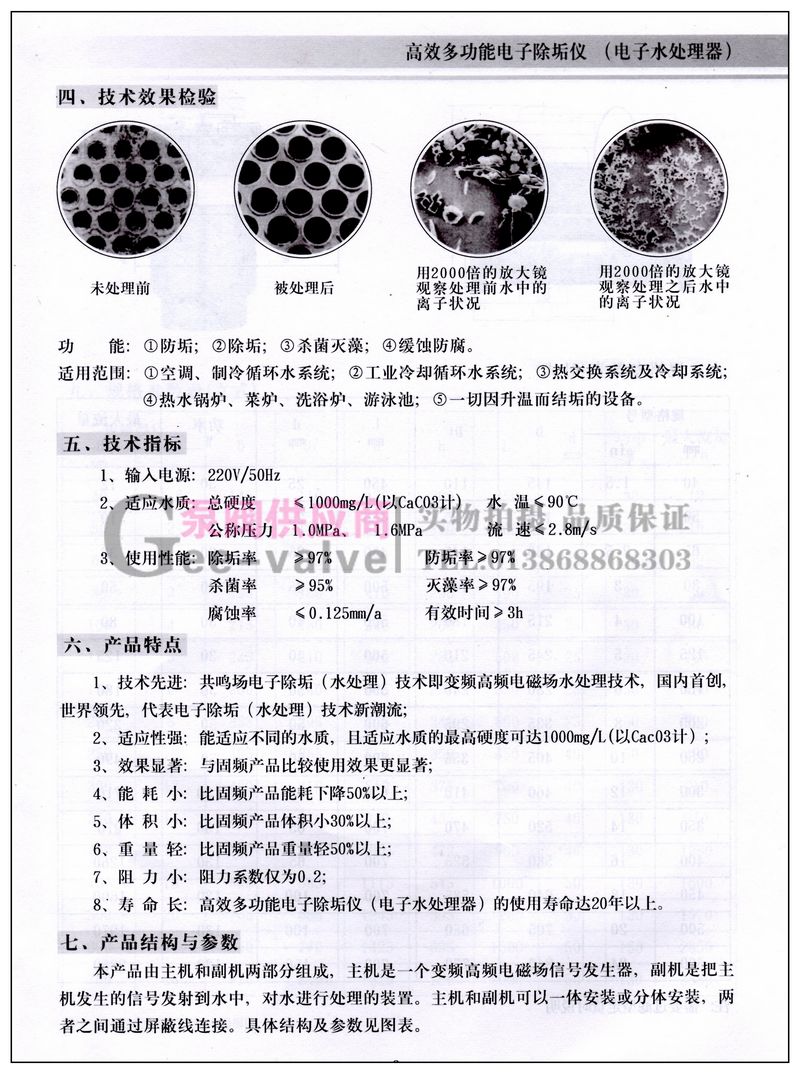 用途及特点:高效多功能电子水处理器是本公司经过多年研究的开发成果,具有国际领先水平的最新一代高效电子水处理设备。