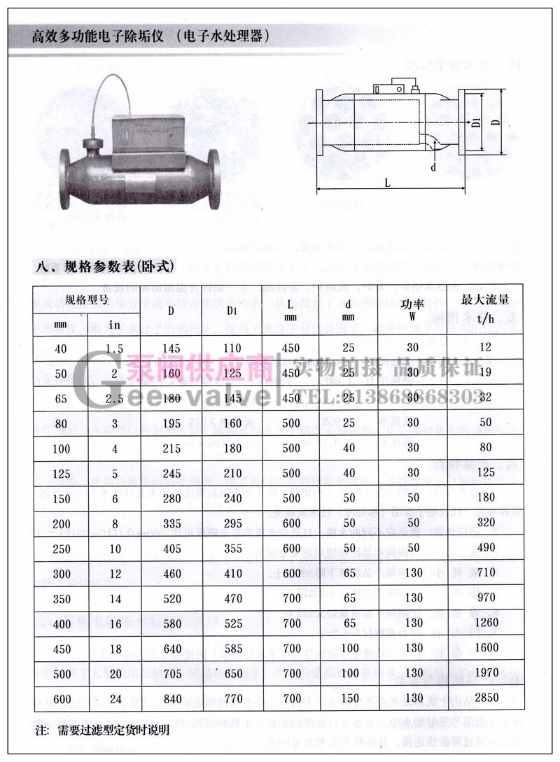 2、适应水质:总硬度≤1000mg/L(以Cac03计) 水温≤90℃ 公称压力1.0MPa、1.6MPa 流速≤2.8m/s