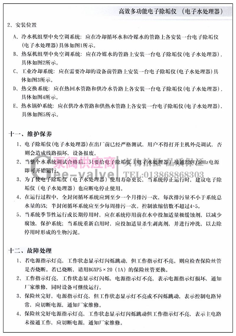 该设备具有防垢除垢、防腐阻锈、杀菌灭藻、活化水质等功能。可广泛应用于中央空调系统、工业冷却系统、热交换系统、热水锅炉系统及其它各种用水设备系统。