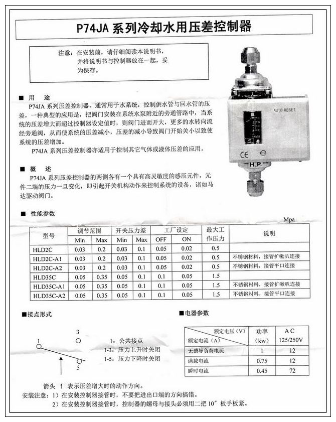 GEEVALVE格阀P74JA系列冷却水用压差控制器