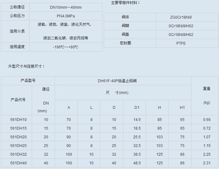 DH61F-40F 低温止回阀