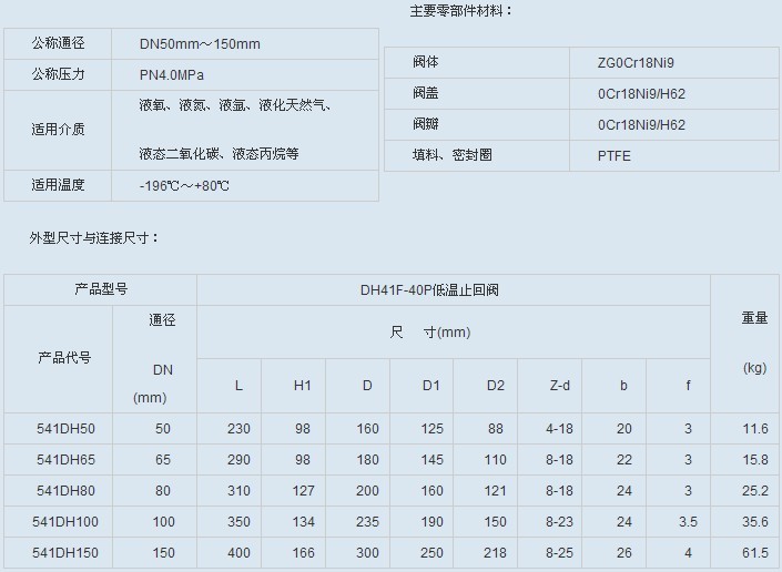 DH41F-40F 低温止回阀