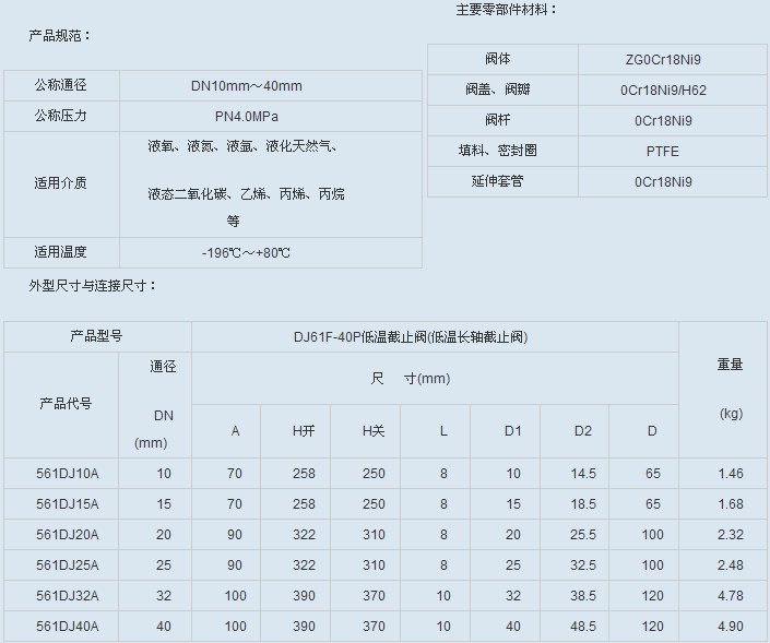 DJ61F-40P 低温截止阀