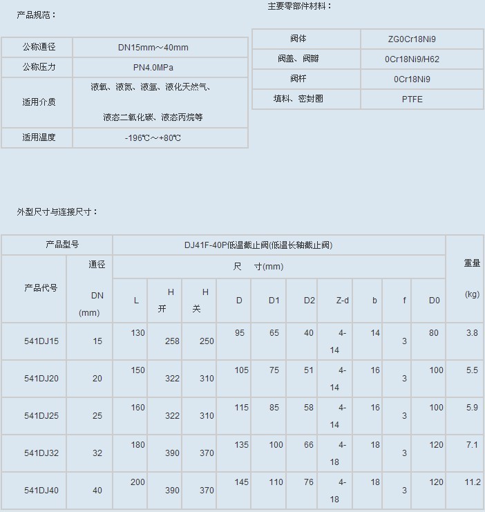 DJ41F-40P 低温截止阀