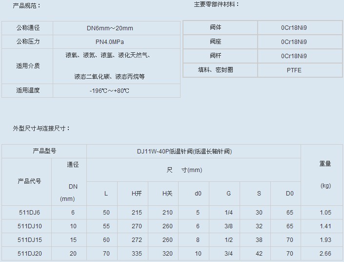 DJ11W-40P 低温针阀