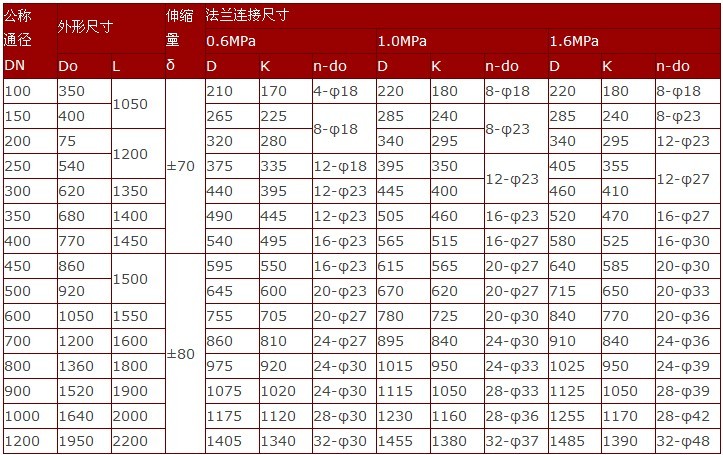 【性能特点】 普通补偿接头为承插式的,轴向伸缩接头本身无法承受介质内压产生的盲板力,所以必须考虑管路的固定,即支架。除了必要的固定与支撑外,支架主要承受的是热胀冷缩和介质内部压力所产生的推力,特别是管路拐弯及三通、四通的位置,支架的造价非常高。为了降低支架造价又能满足使用要求,主要用于在吸收轴向位移的同时能平衡内压推力的补偿接头 【技术参数】 |