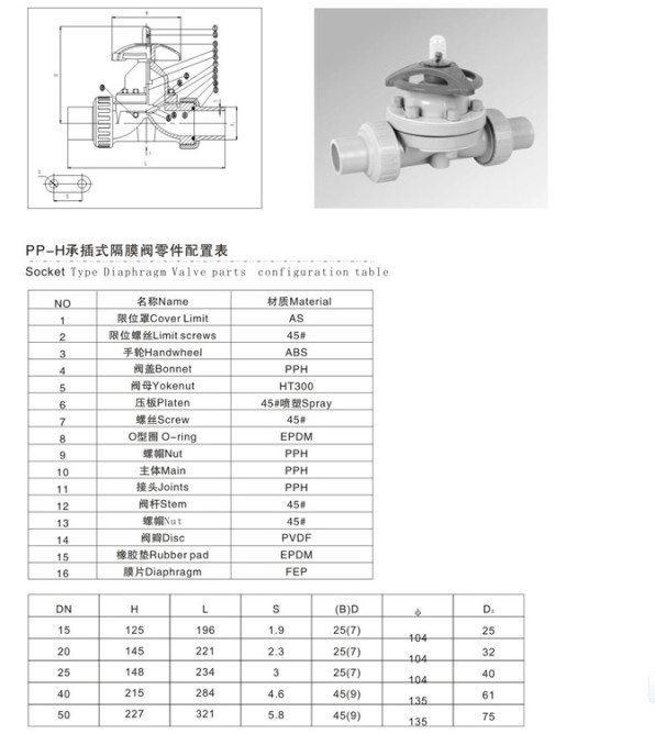 G41F-6F型、G41F-6S型全氟塑料隔膜阀